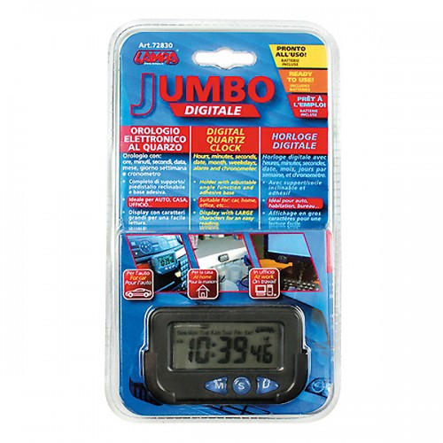 Ώρες, λεπτά, δευτερόλεπτα, ημερομηνία, μήνας, καθημερινές, ξυπνητήρι και χρονόμετρο. Οθόνη με μεγάλους χαρακτήρες για εύκολη ανάγνωση. Ρυθμιζόμενη γωνία βάσης. (Συμπεριλαμβάνονται οι μπαταρίες).