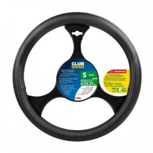 Κάλυμμα τιμονιού εξαιρετικής ποιότητας και αντοχής, ιταλικής προέλευσης, κατασκευασμένο από TPE (Thermoplastic Elastomer), άοσμο, μη τοξικό, οικολογικό προιόν (ανακυκλώσιμο υλικό). Εξαιρετικά μαλακό στην υφή για να προσφέρει άνεση κατά την οδήγηση. Η κατάλληλη λύση για να προστατεύσετε το τιμόνι σας από τις φθορές που μπορεί να προκληθούν από την τριβή κατά τη χρήση αλλά και για τα τιμόνια που ήδη έχουν φθαρεί. Το κάλυμμα τιμονιού CLUB είναι συμβατό με τιμόνια διαμέτρου 35/37 cm και για τα τιμόνια που είναι κοφτά στο κάτω μέρος τους.